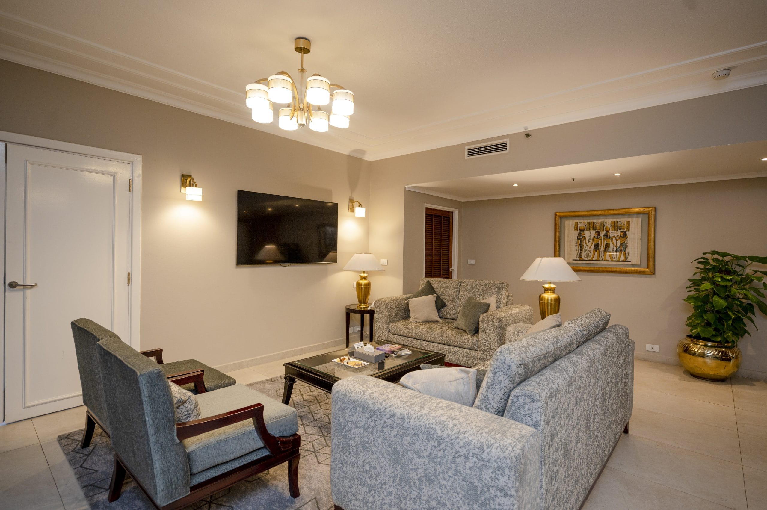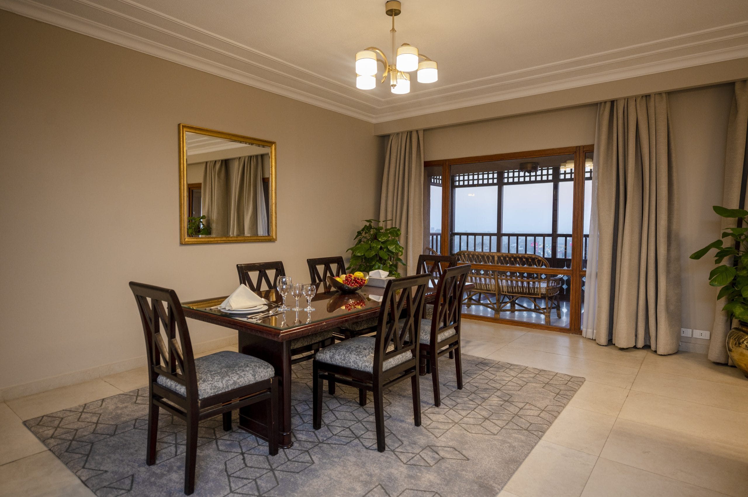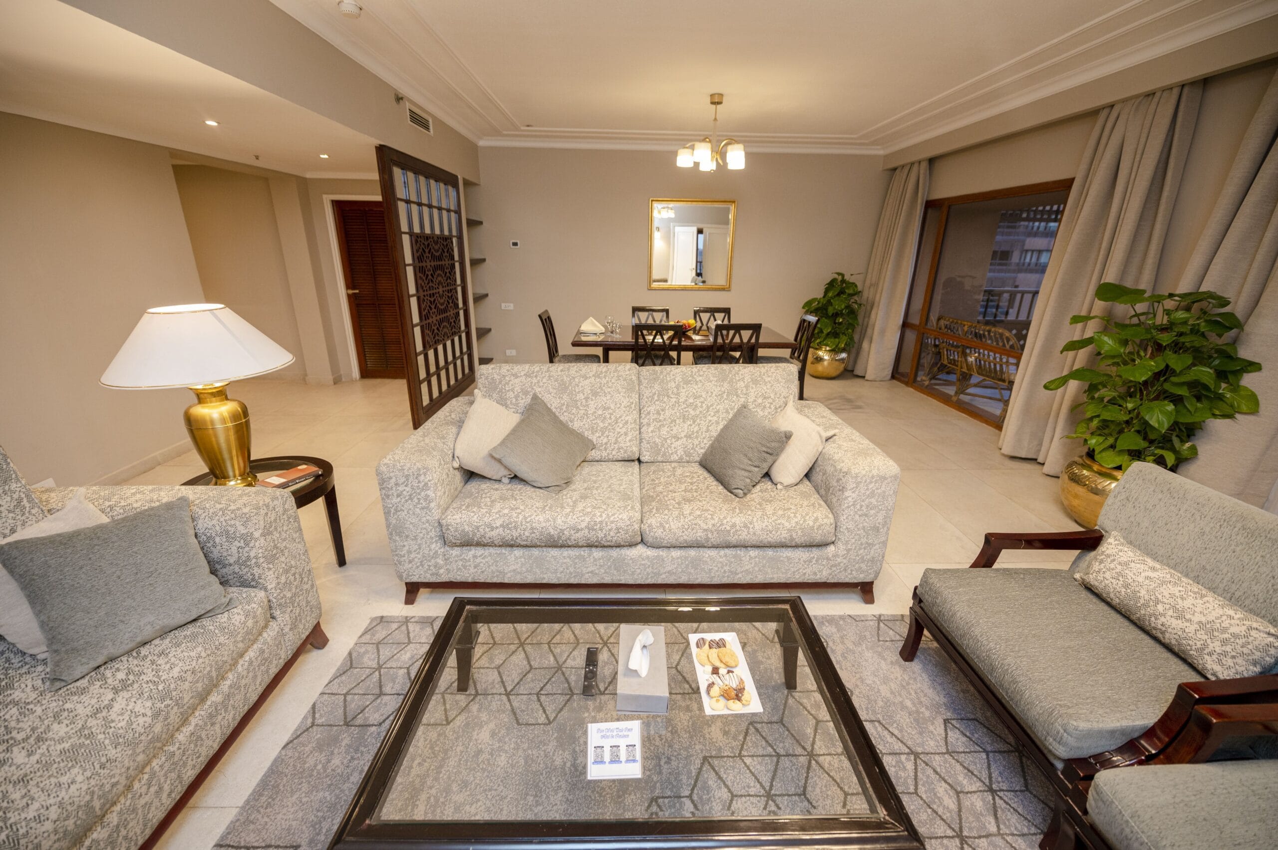 Enjoy a luxurious and spacious stay in the Deluxe Royal Nile Suite, featuring 200 sq m of elegant living space with stunning views of the River Nile from your private balcony. This suite offers separate living and dining areas, a fully equipped kitchen, and comfortable sleeping arrangements with king or twin beds.